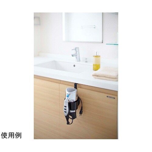 洗面台の扉に掛けるドライヤーホルダーです。コードは、ボディに直接巻きつけ可能! |