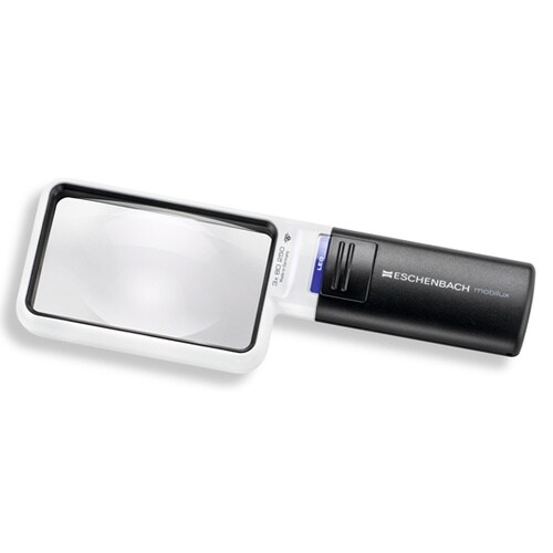 LEDライト付き非球面ルーペ。歪みを抑えた拡大像が得られ、輝度調整キャップにより、明るさを調整できます。大きい角型レンズなので、文字が追いやすい。 |