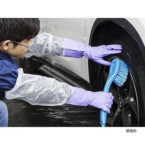 特殊溶着加工で手袋部分と腕カバーを溶着して一体化しているため、水が入らず、汚れ・水を伴う作業に適しています。塩化ビニール製のため、家庭で使われる洗剤や油に強い手袋です。耐久性のある丈夫なあつ手タイプで |