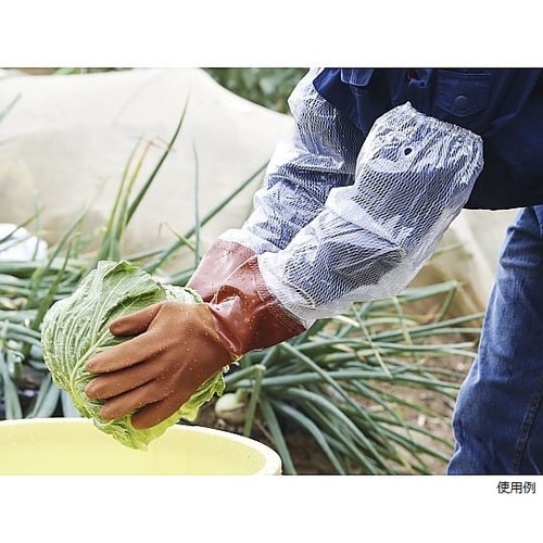 特殊溶着加工で手袋部分と腕カバーを溶着して一体化しているため、水が入らず、汚れ・水を伴う作業に適しています。塩化ビニール製のため、天然ゴムの手袋に比べて油に強い手袋です。裏布に13ゲージの編手を使用し |