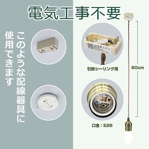 LED電球や電球形蛍光灯も使用できます。お部屋や店舗等の雰囲気に合わせて使用できます。※セードの取り付けはできません。