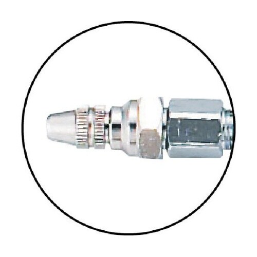 マグネットクーラント、マグネットベースクーラント用替ノズルです。自由自在に方向操作ができます。丸吹き(Rタイプ)のみ流量調整ノズル付です。切削時の切り粉飛ばし作業に。