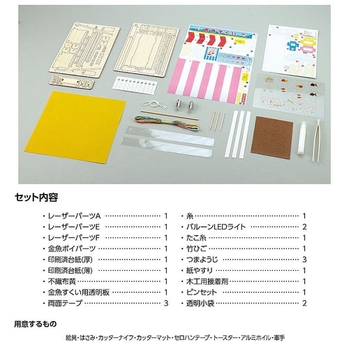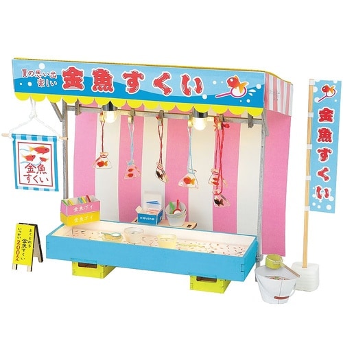 昔懐かしい屋台のジオラマが簡単につくれる!1/12スケールの金魚すくいの屋台のミニチュアがつくれるキットです。透明板に金魚が印刷されており、クオリティの高いジオラマがつくれます。パーツはレーザーカット |