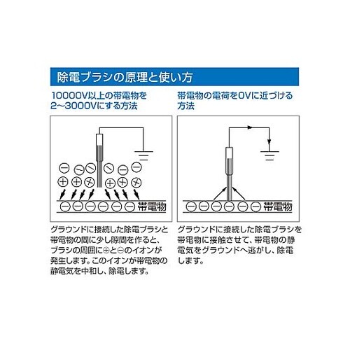 低電圧帯から高電圧帯までの静電気を除電できる用途の広い除電ブラシ。汚れても簡単に洗浄できます。フレームはアルミ製で簡単に切断できます。 |