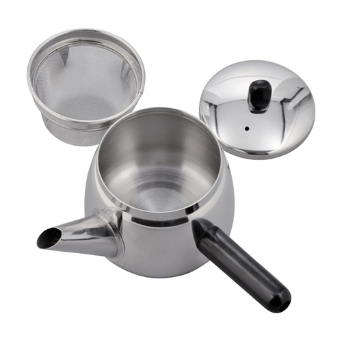 サビに強く耐久性に優れた18−8ステンレス製の急須です茶こしもしやすいステンレスストレーナー付持ちやすく注ぎやすい、横型のストレートハンドル |