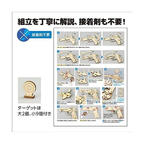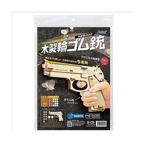 9連式の木製輪ゴム銃撃てば癖になる射撃音!グリップに厚みがあるので持ち心地バツグン!※注意:組み立てが必要です※輪ゴムは付属の的以外に向けて発射しないでください |