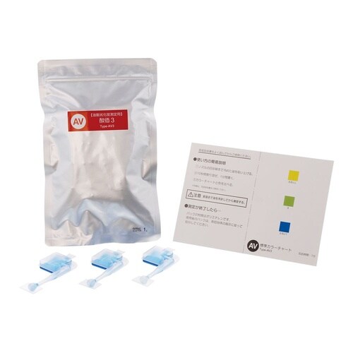 油の酸価を手軽にチェック加工・調理に使用した加熱油脂の酸価を測定する簡易検査キットです。褐色に着色した油脂でも測定可能で、1分で反応が完了します。油を吸い上げ、カラーチャートと比較するだけで容易に酸価 |