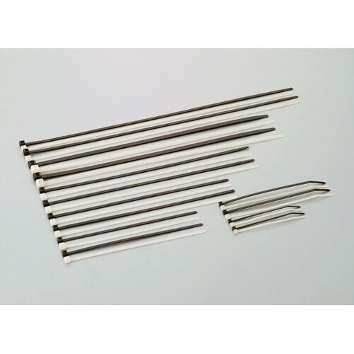 ナイロン66(UL規格94V−2)製の一体成型品で、特に耐蝕性、耐油性にすぐれています。独特の戻り止め自動カムロック式のため、強力で完全な結束ができます。ワンタッチで迅速・簡単に結束作業ができ、能率的 |