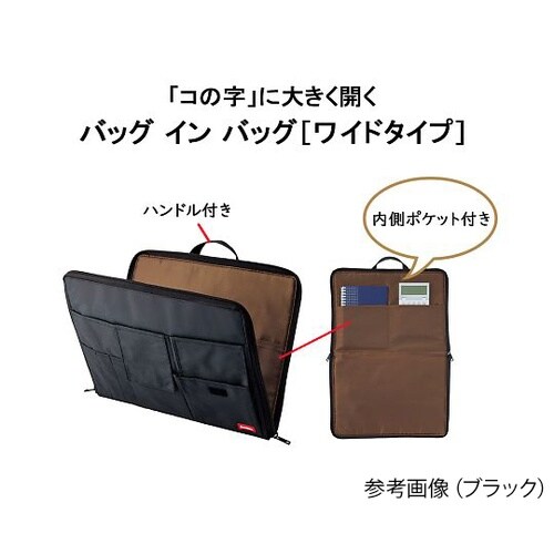 人気のバッグインバッグに収容量がアップしたワイドタイプが登場!カバンの中をスッキリ、スマートに整理。大きくコの字に開くメインポケット!(メインポケットは、ダブルファスナーで大きく「コの字」に開きます。 |