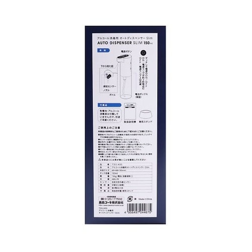 手をかざすとセンサーが感知し消毒液が自動噴射。スイッチに触れることなく衛生的に消毒できます。噴射量を2段階で調整できます。単4形アルカリ乾電池×4本で作動。コンセント不要なので設置場所を選びません。軽 |