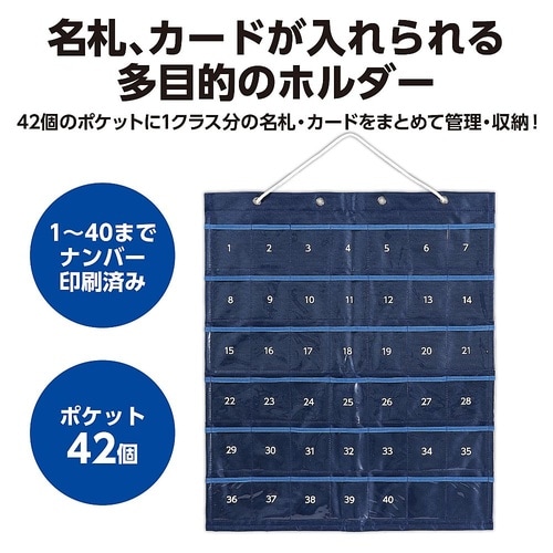 42個のポケットに1クラス分の名札・カードをまとめて管理・収納!ポケットの表面に数字が印字されているのでカード等を入れてもそのまま確認できます。 |