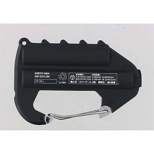 EARTH MAN カラビナ付きモバイルバッテリー ライト付きブラック MB−50CLiBK