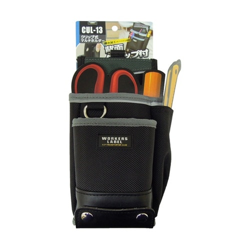 ドライバー、カッター、ニッパーなどの工具収納に。着脱簡単!背面クリップ付き。2way装着対応:クリップ・カラビナで装着できる。反射ライン付き。撥水加工ポリエステル使用。 |
