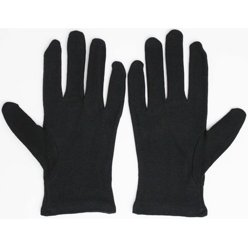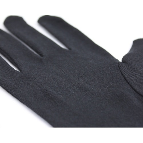 編み目のしっかり詰まった黒色の綿手袋です。吸汗性に優れインナー手袋から作業用途、手荒れ予防まで様々な用途に使用できます。