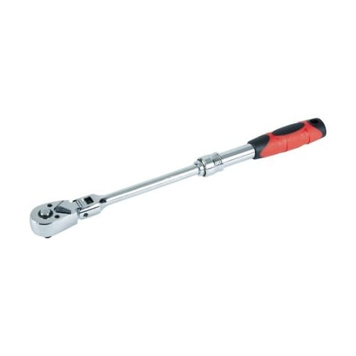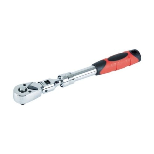全長が可変するので、未使用時はコンパクトにして工具箱などに収納可能です。頭部がフレキシブルに振れることができ、狭い箇所などでの作業に最適です。72歯のギアを採用し、狭い場所での作業を可能にしました。 |