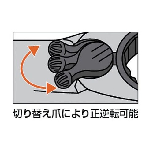 切り替え爪を左右に動かすことで正逆の切り替えが行えます。ノンクロムメッキ処理で環境に優しいです。72枚歯のギアを採用し、送り角度5°を実現しました。ギヤレンチの柄部は曲がり角度15°と小さいので高さ制 |