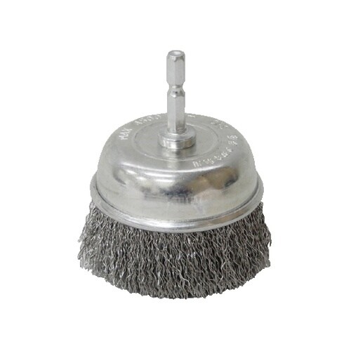 回転工具に取付けて研削、研磨するワイヤーブラシです。チャックがすべらない六角軸を採用。ペンキ剥がし、サビ取り、バリ取り等に使用します。 |