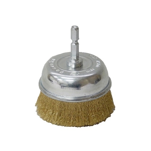 回転工具に取付けて研削、研磨するワイヤーブラシです。チャックがすべらない六角軸を採用。ペンキ剥がし、サビ取り、バリ取り等に使用します。 |