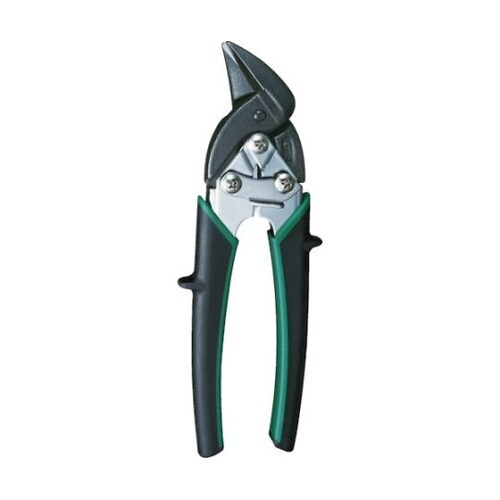 強力スプリングを内蔵しています。安全ロック付です。滑り止めグリップとフィット感のあるハンドルを採用しています。鋭い切れ味で1.2mm厚の鉄板も楽に切れます。