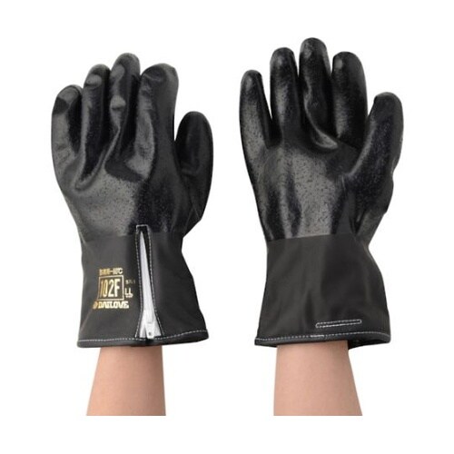 −60℃環境下でも硬くならないポリウレタンを使用した防寒用手袋です。ダイローブ102Fの黒タイプです。表面は、粒子状のすべり止め加工を施しています。ファスナー付です。インナー脱着タイプです。靴底と同素 |