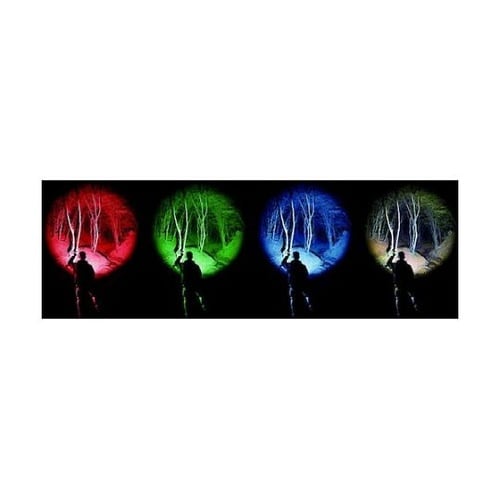 白(270ルーメン)、赤(140ルーメン)、緑(220ルーメン)、青(35ルーメン)の4色切り替え可能の充電式ハンディライトです。フォーカスコントロール付きです。4色切替可能なハンディライトです。 |