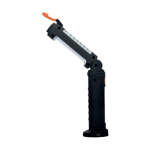 高効率SMD(表面実装)型LEDを前面に搭載しています。先端にスポットレンズ高出力LED付きでスポットライトに切り替え可能です。底面にマグネットが付いて作業環境を選びません。 |