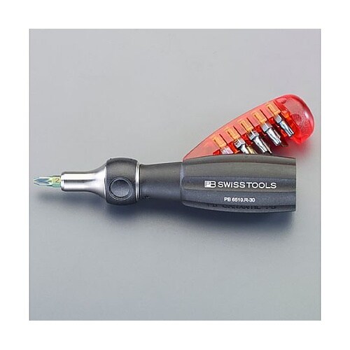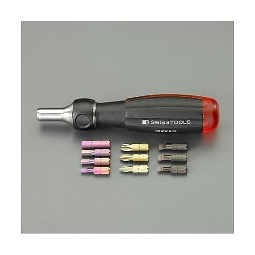 (セット内容11点)差替式ビット10個をハンドル内に収納可能。ラチェット式マグネット付右回転・左回転・固定の切替が可能です。 |