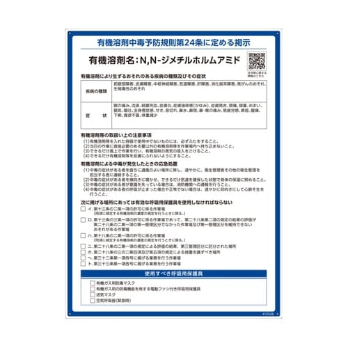 日本緑十字社 有機溶剤標識 N,N−ジメチルホルムアミド RAE−526 600×450mm PP 412526 A04G-1480