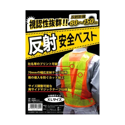 反射安全ベスト オレンジ×イエロー XLサイズ 292505