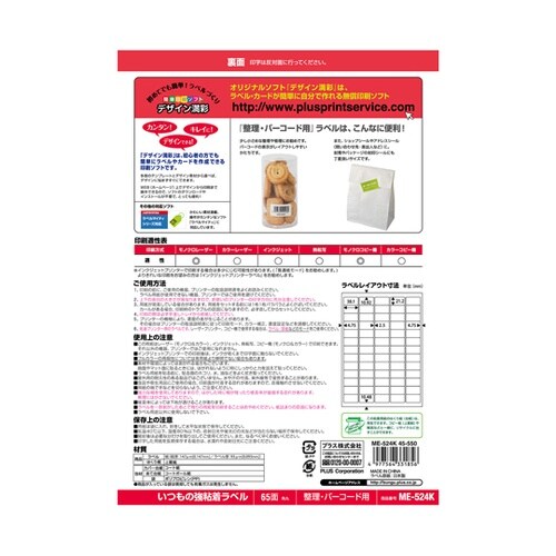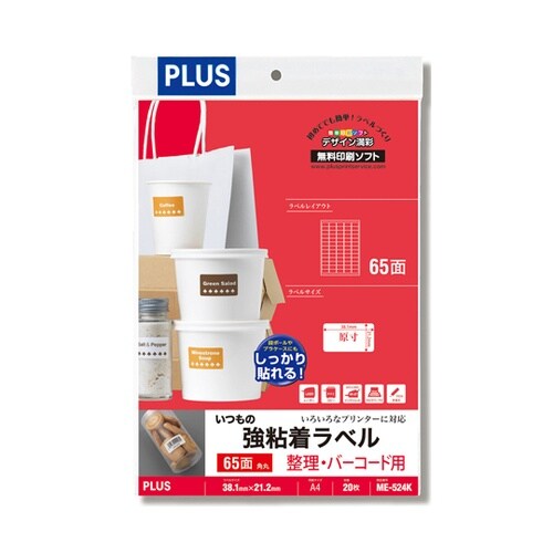 プラス いつもの強粘ラベル 65角丸 ME524K 20シート入 45550 A04G-1668