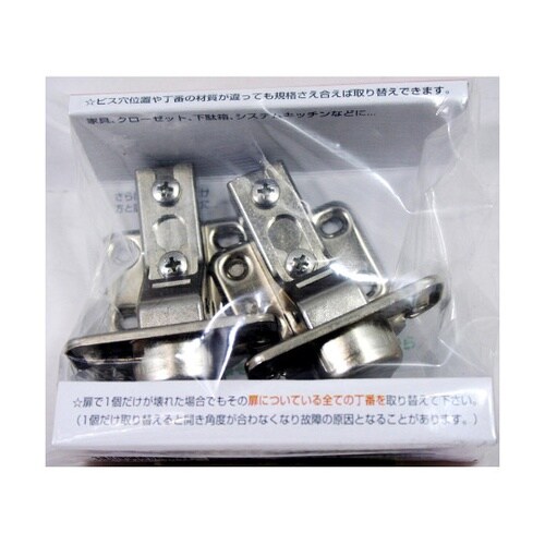 家具、クローゼット、下駄箱、システムキッチンなど用の丁番1個だけが壊れた場合でもその扉についているすべての丁番を取り替えてください。扉の上下で違うメーカーの丁番を付けると破損の原因となります。板が反っ |
