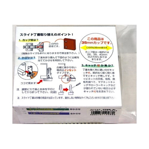 スライド丁番 BH カップ径35mm インセット キャッチ付き 2P 2個入 BH−588