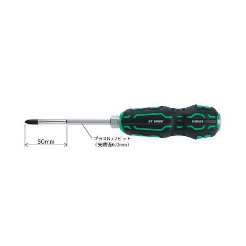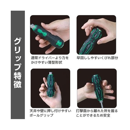強力なトルクを生む、人間工学(エルゴノミクス)デザインのドライバー。φ10mmの鉄芯を貫通させているため、ハンマーの衝撃をそのまま先端へ伝達。ボルスター付きで、レンチ等を使用することで、高トルクを出力 |