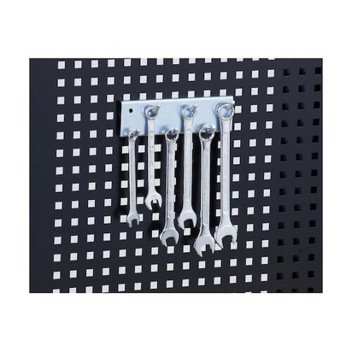 パンチングパネルに取り付けて、小物工具類、各種スパナやレンチなどをフックに引掛けて整理・整頓に適しています。パンチングパネル付の部品管理ラックやツールワゴンなどに取り付けるのが、有効です。パネルにフッ