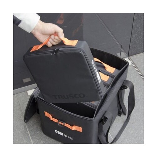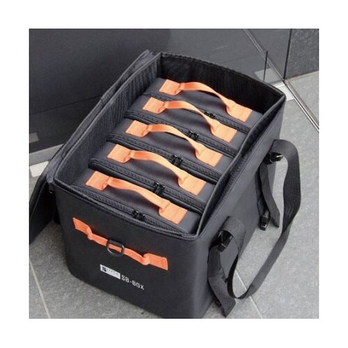 段積み使用ができるプロ作業者向けのボックス型ケース各種です。耐久性&耐水性の高いクリスタルプロテクションPVB生地を使用しています。現場に応じて必要なものだけチョイスできます。電動工具などの大型サイズ |