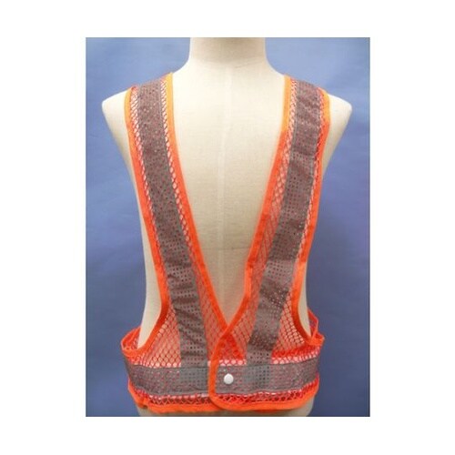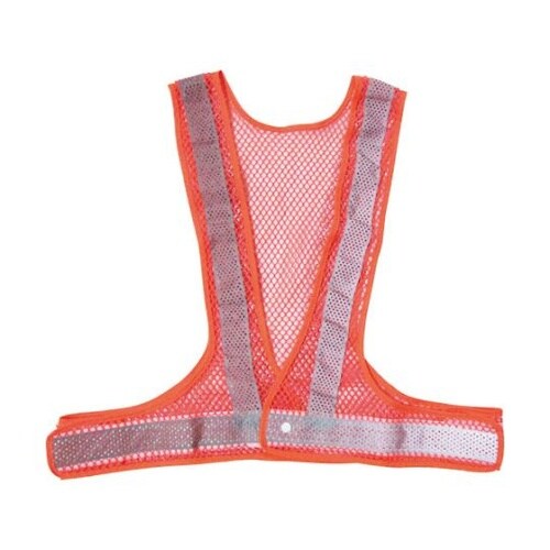メッシュ地の目が大きく、反射材にも穴があいているので通気性が抜群です。正面はプラスチックボタン+面ファスナー、サイドは面ファスナーになっています。高温多湿な現場や環境での作業に。