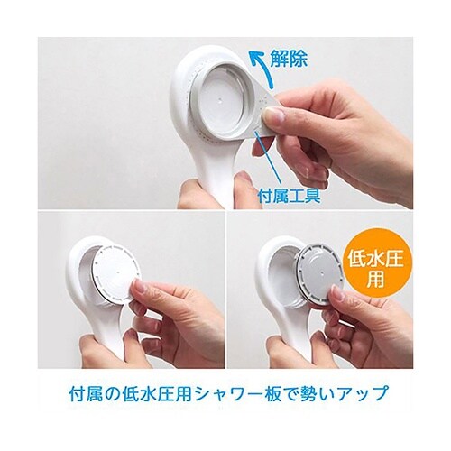 ユニバーサルデザインのシャワーヘッドで従来と比べて超薄型で軽くヘッド部の指掛かりも良い低水圧用シャワー板に交換すれば低水圧のシャワーもパワーアップ静水圧流量測定時、30%節水(当社比)バスルームを明る |