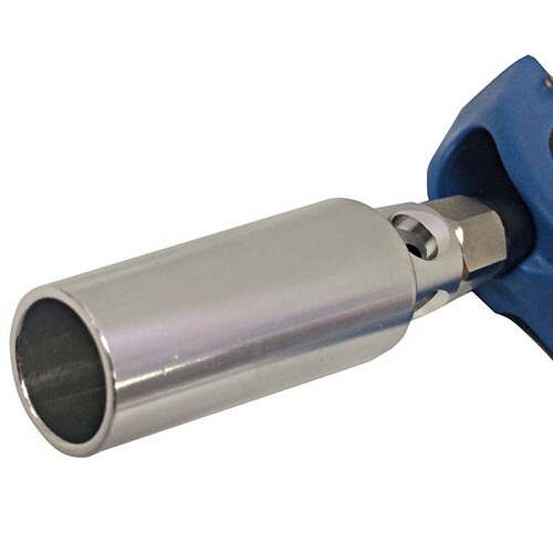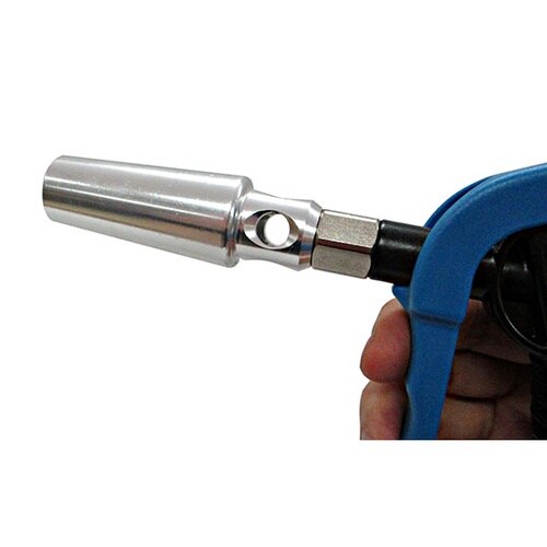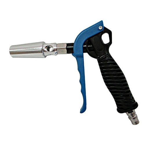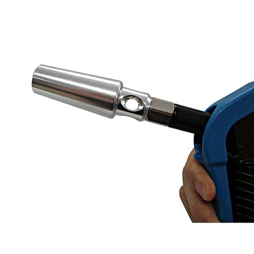 周囲の空気を巻き込む大流量ノズルで、広範囲の吹き付け作業に向いてます。軽くて丈夫なプラダスターです。しっかり握れるレバーです。 |