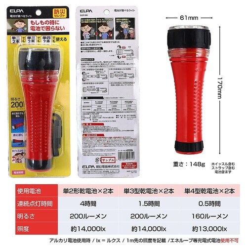単二2本でも単三2本でも単四2本でも使える水に強い防浸形(IPX7)ホイッスル付 |