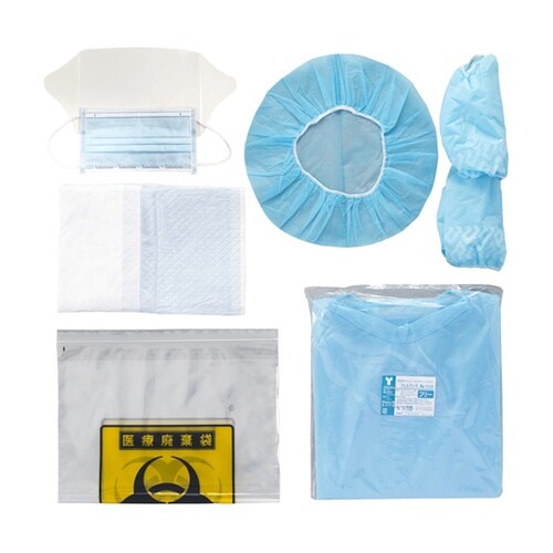 抗がん剤調整時やスピルキットに適したスタンダードモデルです。シールド付マスク:口や眼への曝露を防ぎます。キャップ:頭への曝露を防ぎます。防水性シューズカバー(抗がん剤耐性データあり):足への曝露を防ぎ |