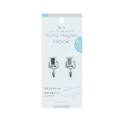 縦にスイングするミニマグネットフックです。ネオジム磁石仕様で小さくても磁力抜群。シンプル形状なのでインテリアにも適しています。 |