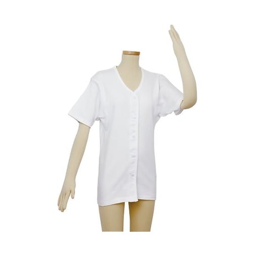 吸収性に優れ、肌触りのよい綿素材を用いた厚手の女性用半袖肌着。軽い力でつけはずしができるので着脱を簡単に行うことができます。