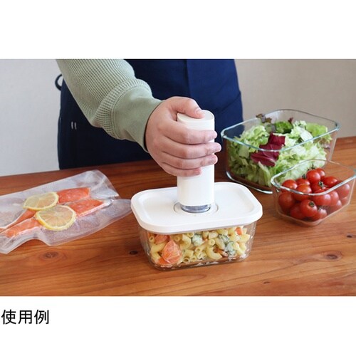 真空保存で鮮度長持ち!コンパクトで場所を取らない手軽に使える真空ハンディポンプ別売のキャニスターは洗って何度でも使えてエコボタンをタッチするだけの簡単操作※※圧力センサーが‐30kPaを検知すると自動 |