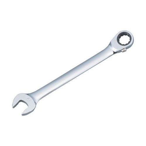 正逆は切り替えピン式です。美しい硬質クロムメッキ処理をしています。スパナ部分は、ノンスリップ仕様になっているので、ボルトやナットをしっかりつかめます。72枚歯のギアを採用しています。 |