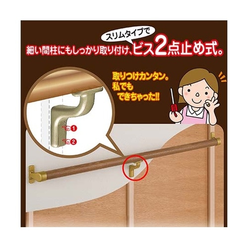取りつけカンタン。私でもできちゃった!!窓枠、介護用、リフォーム等のあと付け手すりに!細い間柱にもしっかり取り付け、スリムタイプでビス2点止め式玄関やトイレ、廊下、リビングなどの室内用補助手すり金具安 |