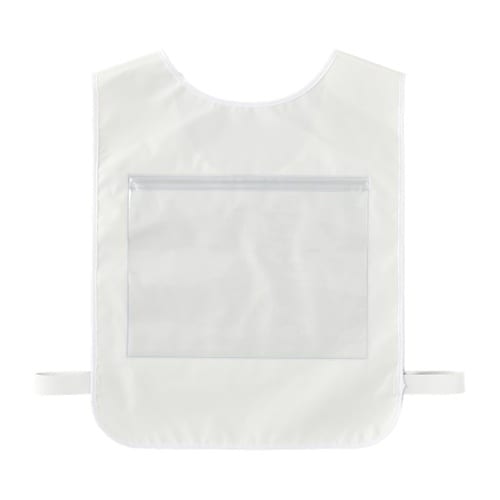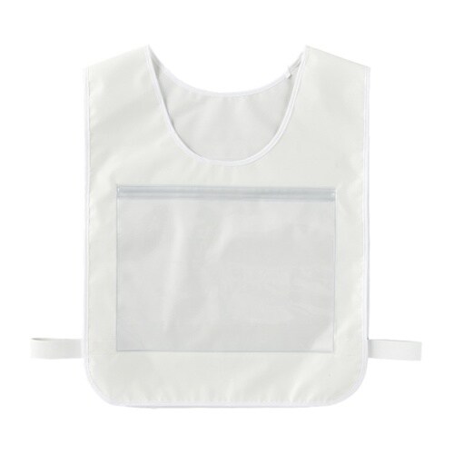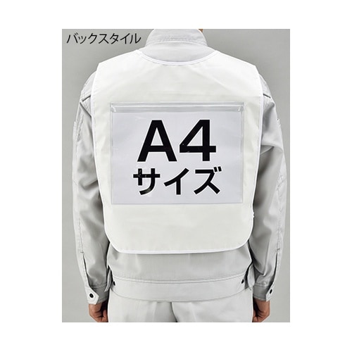 A4サイズまでの用紙を掲示可能な透明ポケットはジップタイプで、用紙の差し替えも容易です。ウエストは面ファスナーによるフレキシブルなサイズ調整が可能です。 |