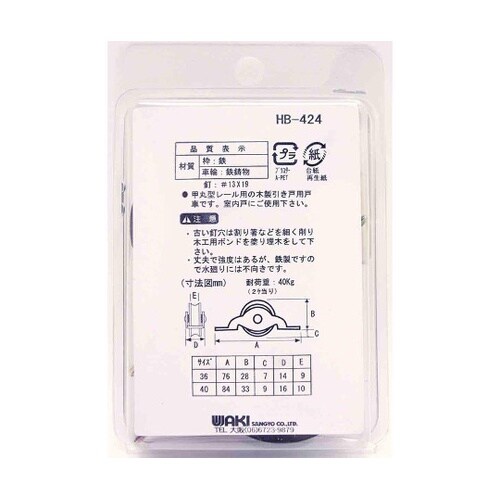 甲丸型レール用の木製引き戸用戸車です。室内戸にご使用下さい。古い釘穴は割り箸などを細く削り木工用ボンドを塗り埋木をして下さい。丈夫で強度はあるが、鉄製ですので水廻りには不向きです。 |
