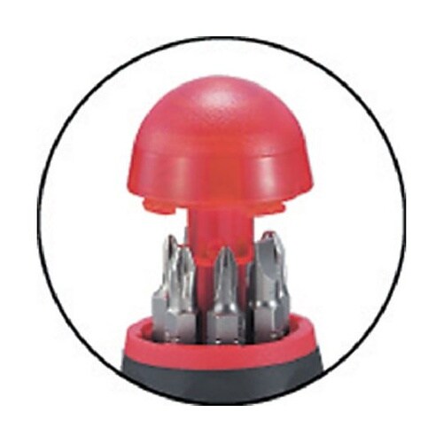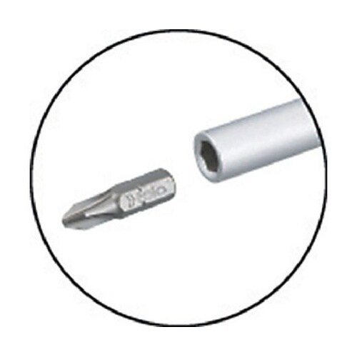 この1本で8サイズに対応します。本体頭部が開閉式マグネットキャップ仕様となっていて7本のビットを収納できます。マグネットにより内部でばらつくことはないので作業中に不快感を与えずスムーズに作業できます。 |