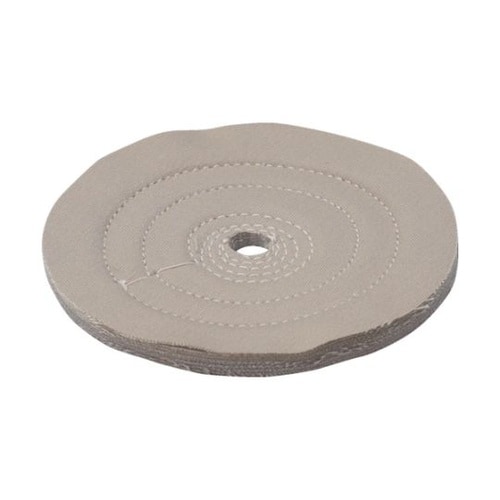 青棒を付けて一般金属の仕上げ研磨ができる綿布バフです。樹脂用トリポリを付けて樹脂の研磨に使用できます。金属の鏡面仕上げ。樹脂の加工傷などの除去。使用工具:ストレートグラインダー、両頭グラインダー、バフ |
