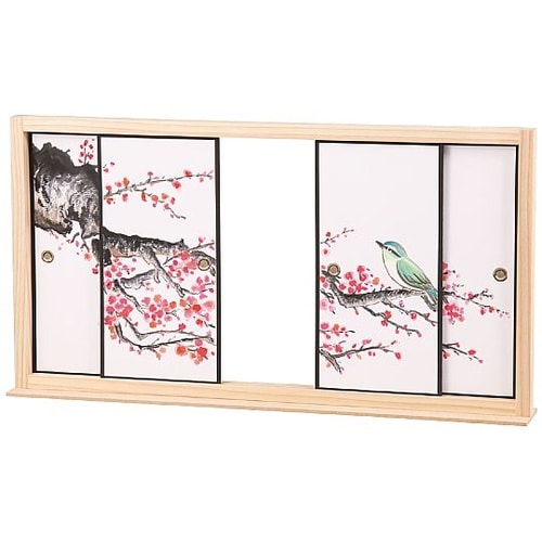 金潜紙、画仙紙両面使用でき、ポスターカラー、水彩えのぐ、墨などが使用できます。本物のふすまの約1/10サイズです。スライド可能な鴨居&敷居付 |